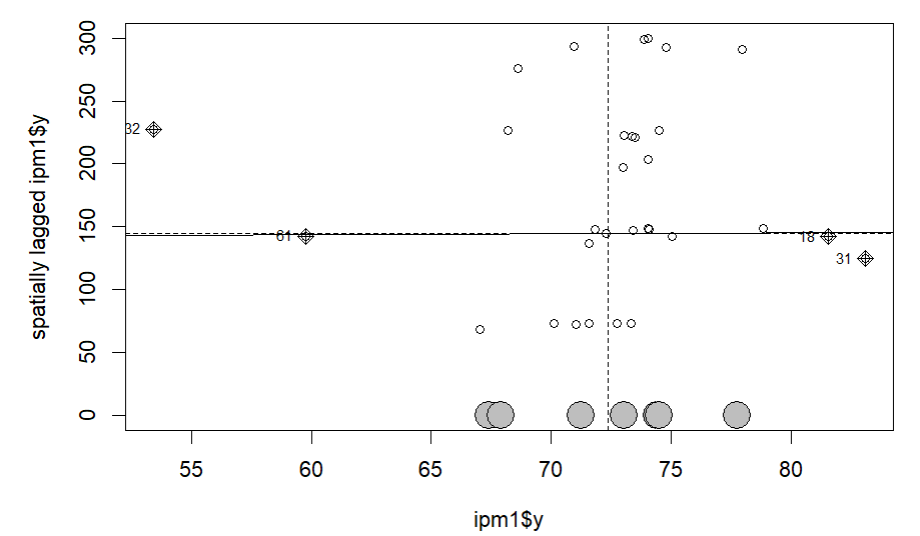 moran.plot(ipm1$y, W_optimum, labels=ipm1$id)