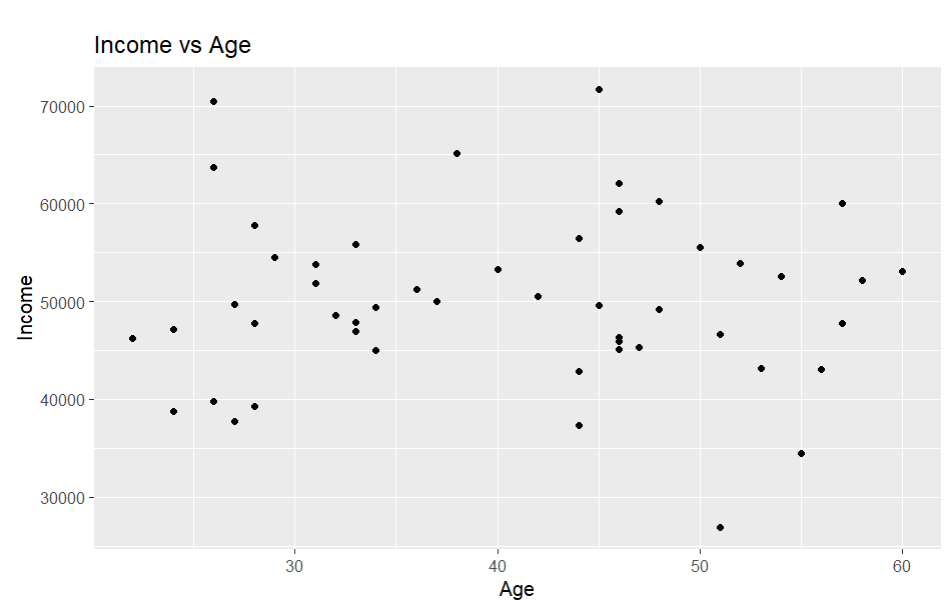 ggplot(data, aes(x = age, y = income)) + geom_point()