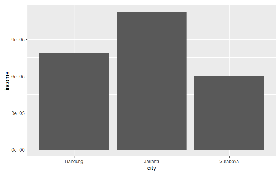 ggplot(data, aes(x = city, y = income)) + geom_col()