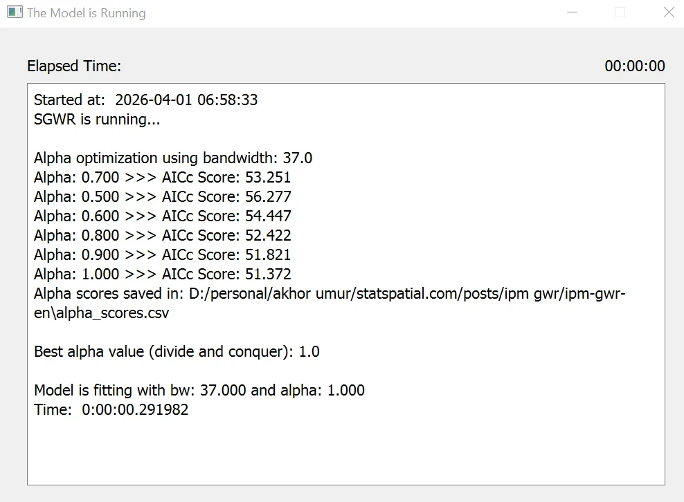 The output results compare the Global Regression (Standard) and the SGWR (Local) models. Overall, the SGWR model is superior in explaining the data because it successfully captures inter-regional variations.